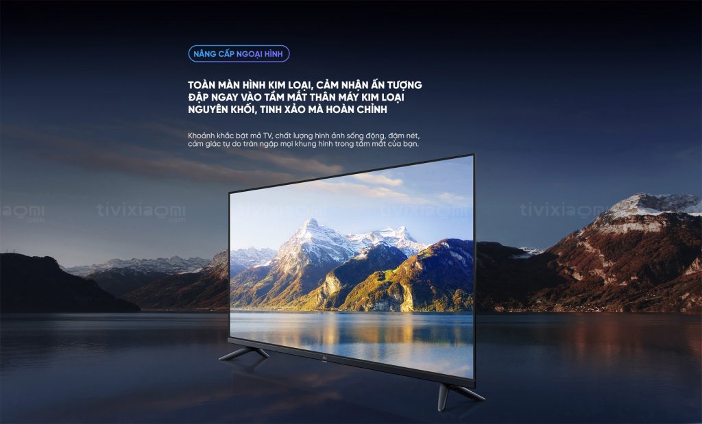 tivi Xiaomi EA32 có thiết kế tràn viền khung kim loại siêu mỏng, kèm nâng cấp toàn bộ về chất lượng âm thanh và hình ảnh