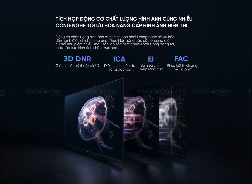 Được tích hợp nhiều công nghệ tối ưu hóa chất lượng hình ảnh hiển thị cho trải nghiệm hình ảnh chân thật và sống động. Để giảm nhiễu hình ảnh; tinh chỉnh màu sắc, độ sắc nét, hình ảnh nổi khối…Tivi Xiaomi EA32 được tích hợp công nghệ 3D DNR, ICD, EI Và FAC hoàn toàn mới