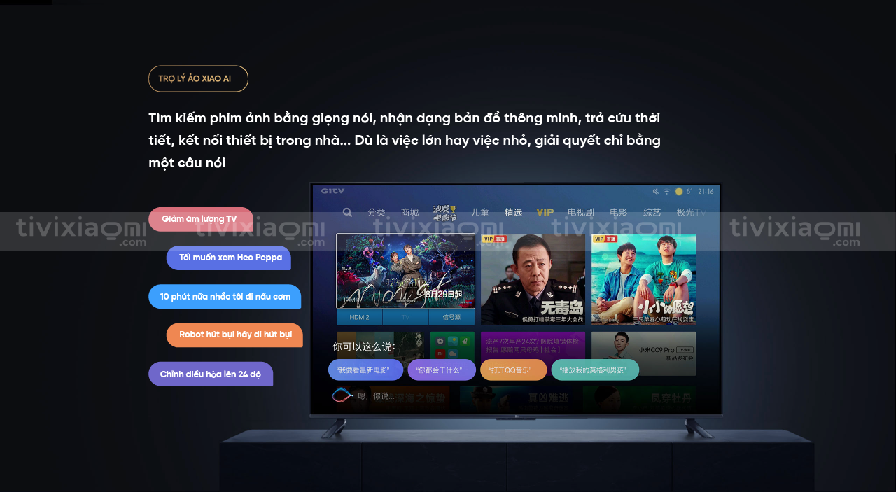 Hoàn toàn giải phóng đôi tay, bạn có thể đứng từ xa vài mét để ra lệnh cho TV. Dù là gợi ý những bộ phim bom tấn mới nhất, hay điều khiển thiết bị gia dụng, đều sẽ nhận phản hồi ngay lập tức. Trang bị giọng nói từ xa hoàn toàn mới, giờ đây giọng nói của bạn chính là điều khiển từ xa. Tắt máy, chuyển kênh đều chỉ cần một câu nói