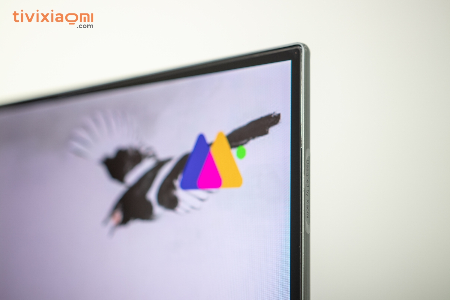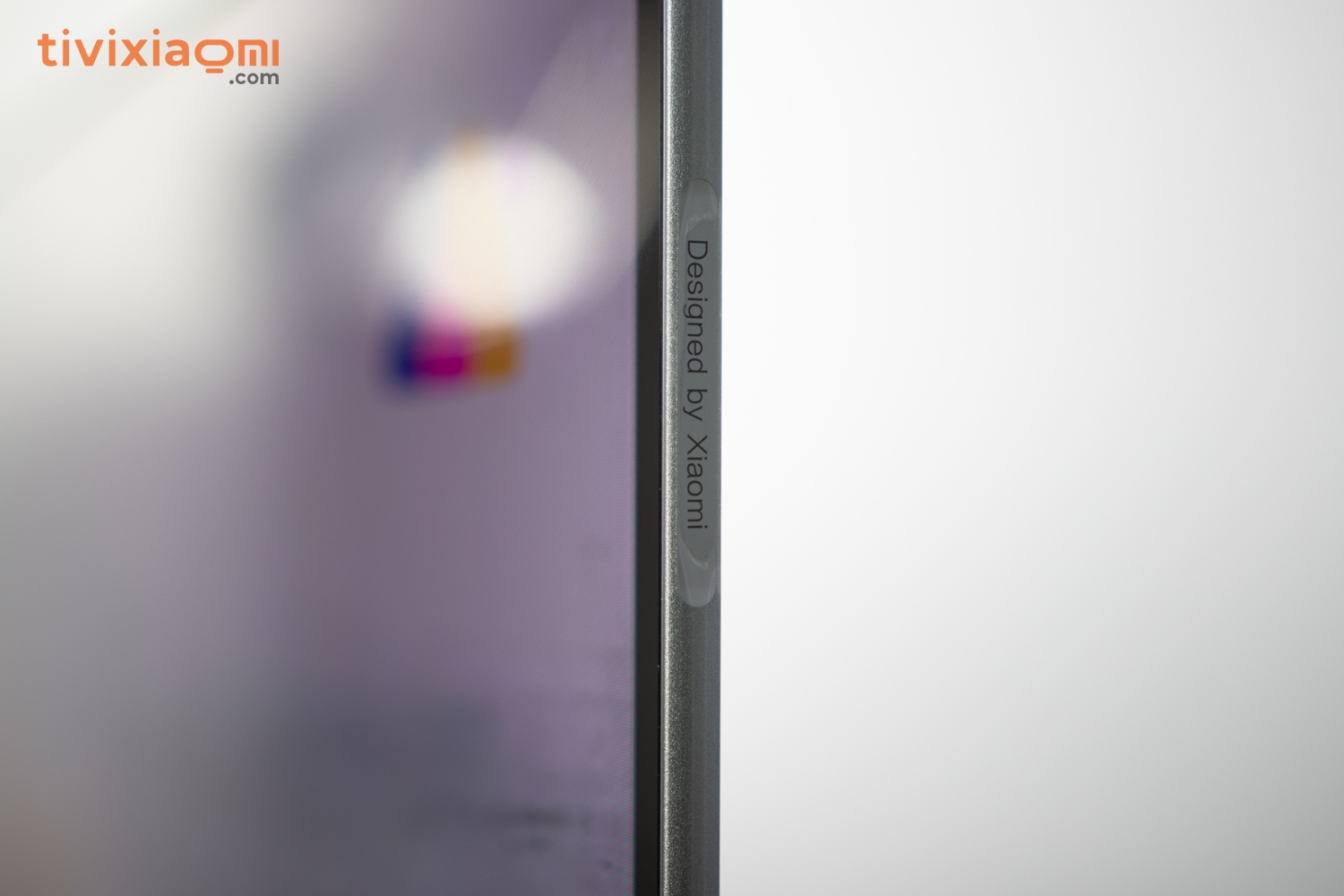 Đến với cả phần viền kim loại xung quanh cũng được làm bằng kim loại luôn và chúng ta sẽ có dòng chữ “Designed by Xiaomi” cực kỳ nổi bật nằm ở phía cạnh viền bên phải, dòng chữ này chỉ thường được xuất hiện trên các sản phẩm cao cấp của Xiaomi mà thôi. Và như bạn có thể thấy ở đây chúng ta có một cạnh viền của chiếc Tivi Xiaomi Mi Tivi 5 Pro cực kỳ ấn tượng với kích thước chỉ 5.9mm mà thôi thậm chí nó còn mỏng hơn cả một chiếc smartphone hiện nay.
