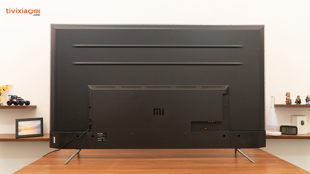 Cũng như các mẫu MiTV trước đây, Tivi PRO E75S cũng có đầy đủ hệ thống loa và các cổng kết nối được bố trí hợp lý ở mặt sau. Chúng ta có thể thấy phía bên này là vị trí dây nguồn, ở giữa là loa cùng logo Xiaomi, còn phía này sẽ là những cổng kết nối. Với cách bố trí này, TV sẽ dễ dàng kết nối hơn và vẫn đảm bảo được tính thẩm mỹ.