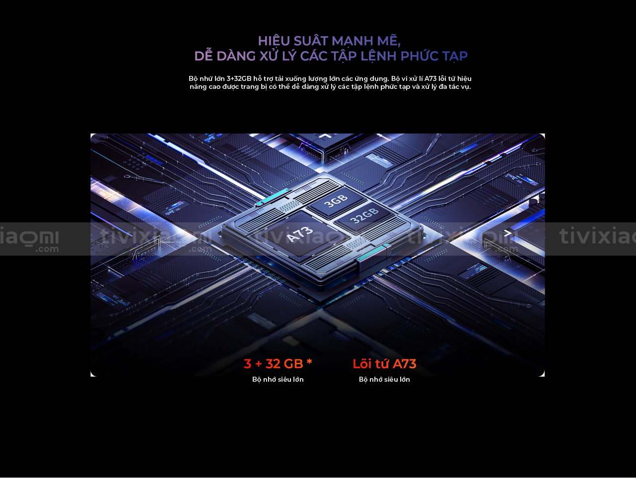 Hiệu suất mạnh mẽ với bộ vi xử lí A73 lõi tứ hiệu năng cao, dễ dàng xử lý các tập lệch phức tạp.