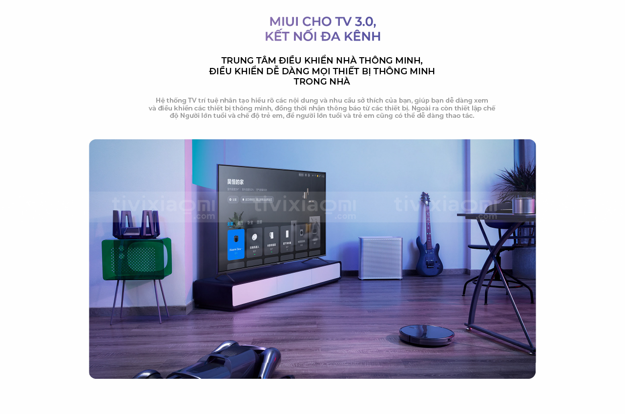 Trang bị trợ lý ảo Xiao Ai điều khiển thông minh từ xa, không còn cần đến chiếc điều khiển. Dù là trình chiếu nội dung, điều chỉnh âm lượng, tra cứu dự báo thời tiết, kết nối thông minh các thiết bị trong nhà…, chỉ cần một câu hô gọi trợ lý ảo Xiao AI là có thể giải quyết mọi nhu cầu của bạn.