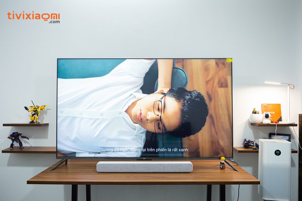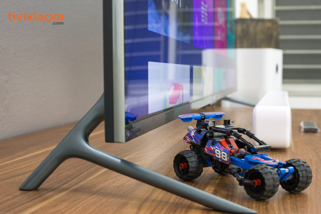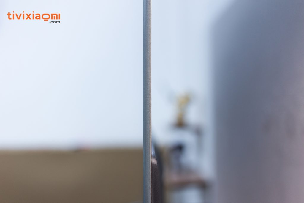 Quay trở lại với phần màn hình mặt trước thì chúng ta có được tỉ lệ diện tích màn hình so với tỉ lệ diện tích mặt trước lên tới 97% các bạn nhé, thật sự đây là một con số rất lớn, hiếm có mẫu TV nào trên thị trường đạt được con số lớn như vậy. Chúng ta sẽ có phần viền xung quanh làm rất mỏng, điều này sẽ có rất nhiều lợi ích, lợi ích đầu tiên đó chính là khi chúng ta trải nghiệm xem phim thì cảm giác sẽ tràn viền hơn nhìn sẽ đã hơn rất nhiều, Xiaomi đã rất tinh tế khi đưa vào sản phẩm của mình ngôn ngữ thiết kế bắt kịp với thời đại hiện nay của các đối thủ khác.