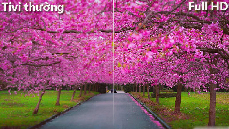 Màn hình tivi hỗ trợ độ phân giải Full HD cùng với công nghệ HDR, cho hình ảnh hiển thị sắc nét và có độ tương phản cao.