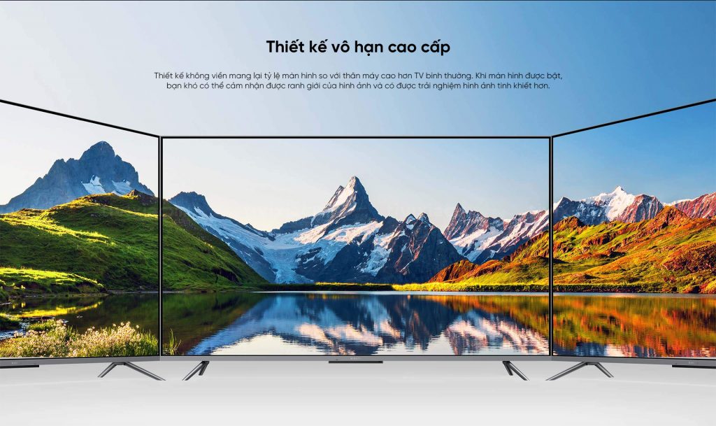 Thiết kế vô hạn cao cấp, không viền mang lại tỷ lệ màn hình so với thân máy cao hơn TV bình thường