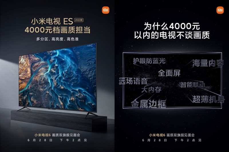Xiaomi đã xác nhận sẽ ra mắt dòng Mi TV 6 tại Trung Quốc vào ngày 28/6. Bây giờ, công ty còn tiết lộ thêm rằng dòng Mi TV 6 sẽ được công bố cùng với một dòng TV thông minh khác có tên là Mi TV ES 2022.